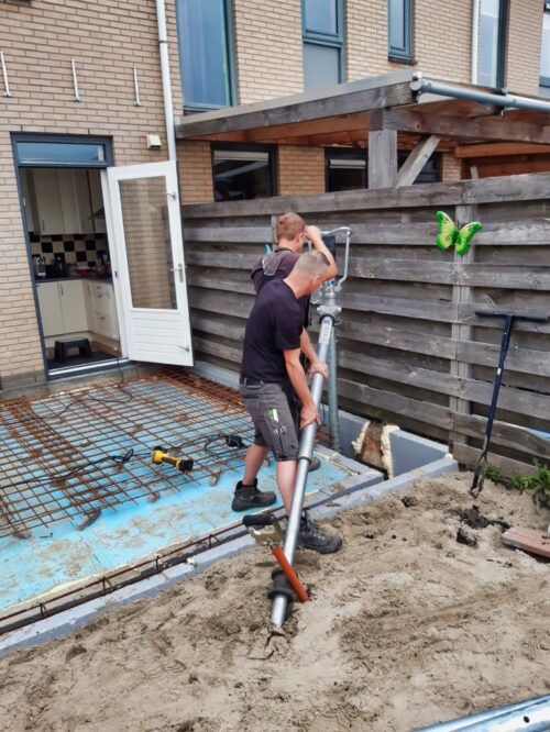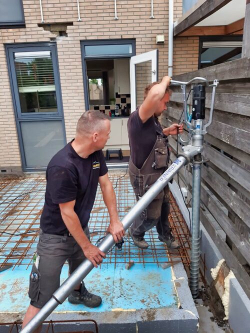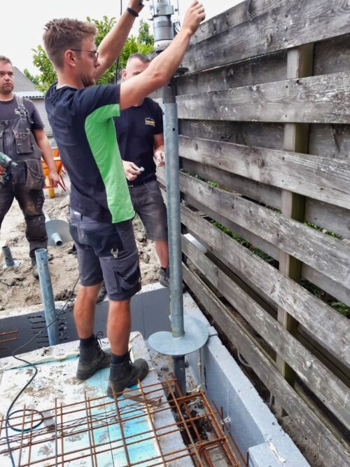 Rond het huis is vaak beperkte ruimte om te werken. Dit maakt deze schroeftechniek een ideale oplossing. Zo hoeft er geen beton meer te worden gestort om een stevig fundament aan te brengen.